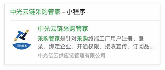 ① 打開微信,搜索 【 中光云鏈采購管家 】,打開小程序