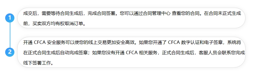 成交后,需要等待合同生成后,完成合同簽署。您可以通過合同管理中心 查看您的合同。在合同未正式生成前,買賣雙方均有權(quán)取消訂單。